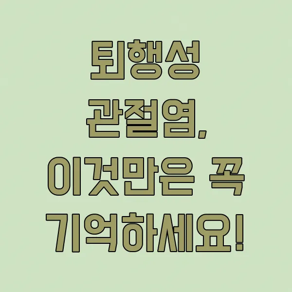 퇴행성 관절염 완치, 이것만은 꼭 알아두세요!