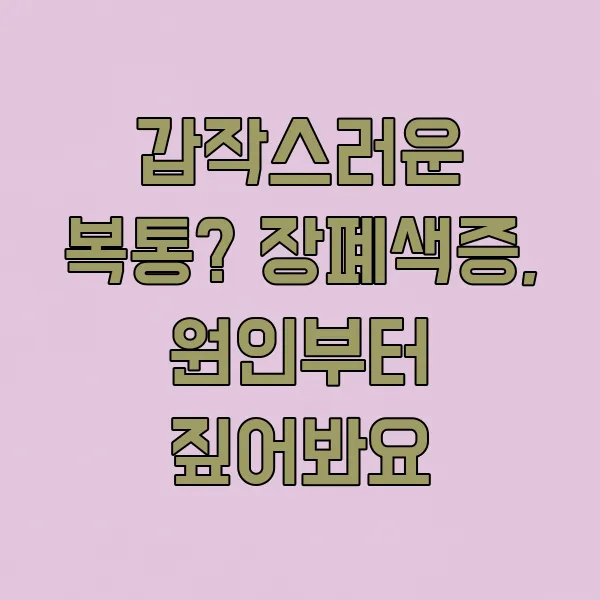 안녕하세요! 오늘은 정말 많은 분들이 궁금해하시는 '장폐색증'에 대해 이야기해 보려고 해요. 혹시 복통이나 구토 증상이 심한데 이유를 모르겠다면, 장폐색증을 의심해 볼 필요가 있답니다. 장폐색증은 말 그대로 장이 막혀서 내용물이 통과하지 못하는 상태를 말하는데요, 생각보다 다양한 원인으로 발생할 수 있어요. 어떤 상황에서 우리 몸에 이런 일이 생기는 건지, 오늘 저와 함께 차근차근 알아가 보실까요?
