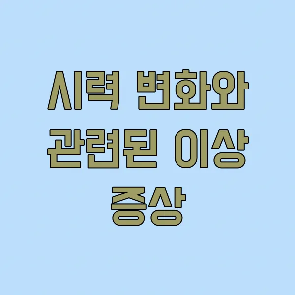 | 시력 변화 | 시야 흐림 , 빛 번짐 , 후광, 색깔 왜곡 | 주변부 시야 먼저 흐려질 수 있음 |