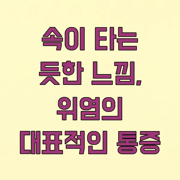 위염이라고 하면 가장 먼저 떠오르는 증상이 바로 속 쓰림 일 거예요. 마치 불이 난 것처럼 뜨겁고 따끔거리는 통증이 명치 부근을 중심으로 느껴진답니다.