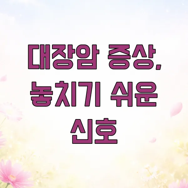 혹시 이런 증상, 대수롭지 않게 넘기고 계신가요? 대장암은 초기에 발견하면 완치율이 높지만, 증상이 다른 질환과 비슷해 방치하기 쉽습니다. 평소와 다른 우리 몸의 작은 신호들을 그냥 지나치지 않도록, 대장암의 주요 증상과 놓치기 쉬운 신호들에 대해 자세히 알아보아요!